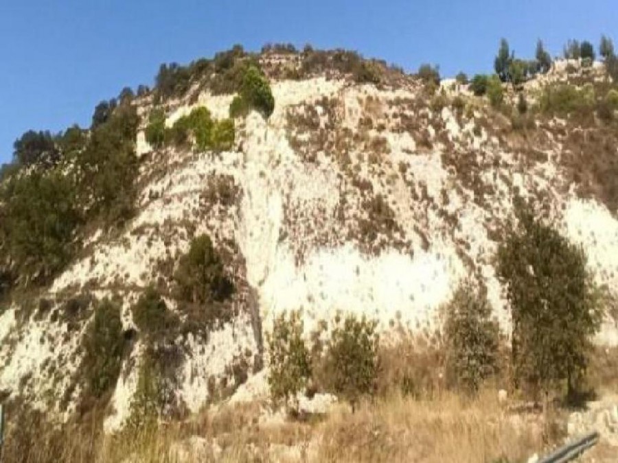 It has an irregular shape with a slopy surface. According to the title deed, the property benefits from a right of way. The property is located approximately 35 meters east of the nearest registered road.