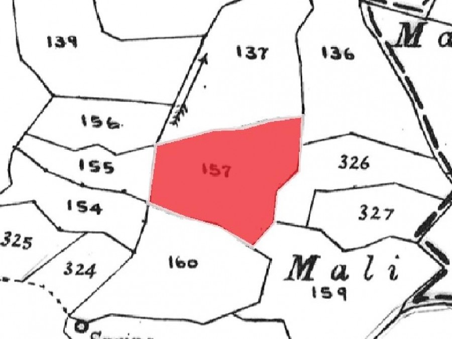 The field has an irregular shape with sloping land surface and the property is landlocked.