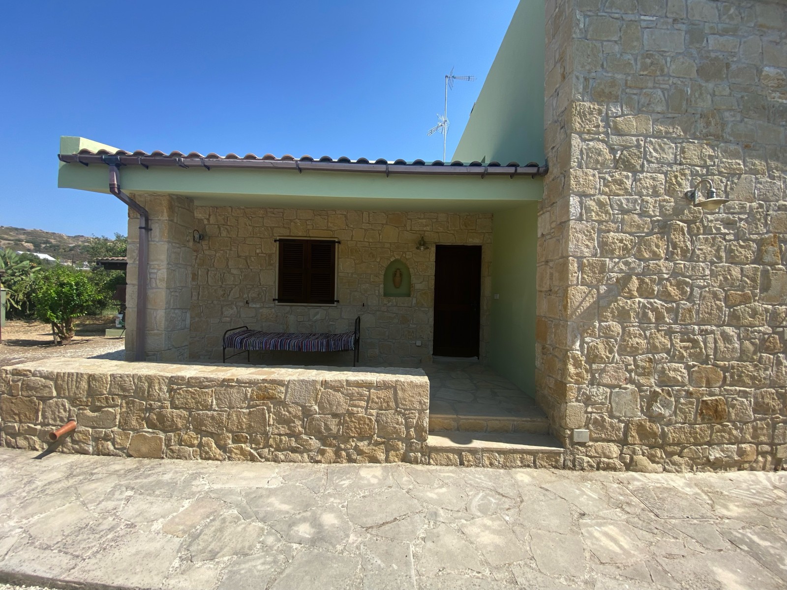 In the same land there is also a 2 storey detached traditional village house, which it comprises on the ground floor of an open plan living room. dining room and kitchen area, a double bedroom and a bathroom. On the 1st floor there is a double bedroom, a family bathroom and a balcony. There are 2 energy efficient fire place, one on the ground floor and the 2nd one on the 1st floor.