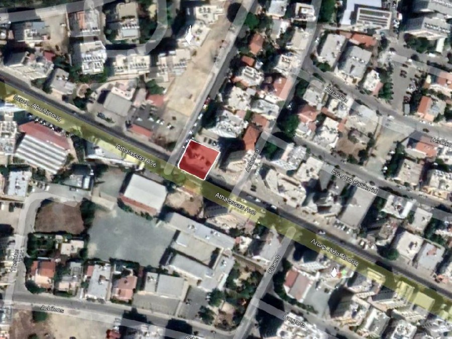Corner commercial plot in a lively and popular location in Agios Demetrios quarter of Strovolos Municipality. The property abuts onto Athalassa Avenue and Korai street, at a distance of 330 meters (approx.) southeast of private school “The English School” and 900 meters (approx.) southeast of the Presidential Palace.