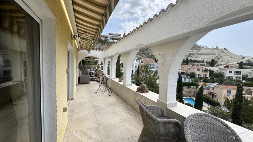 Set in a tranquil residential area of Tala, this exceptional 5-bedroom villa occupies an elevated position, offering breathtaking panoramic views of the sea and surrounding mountains. Just a short drive from Paphos town and the coastline, the property combines privacy, space, and convenience.