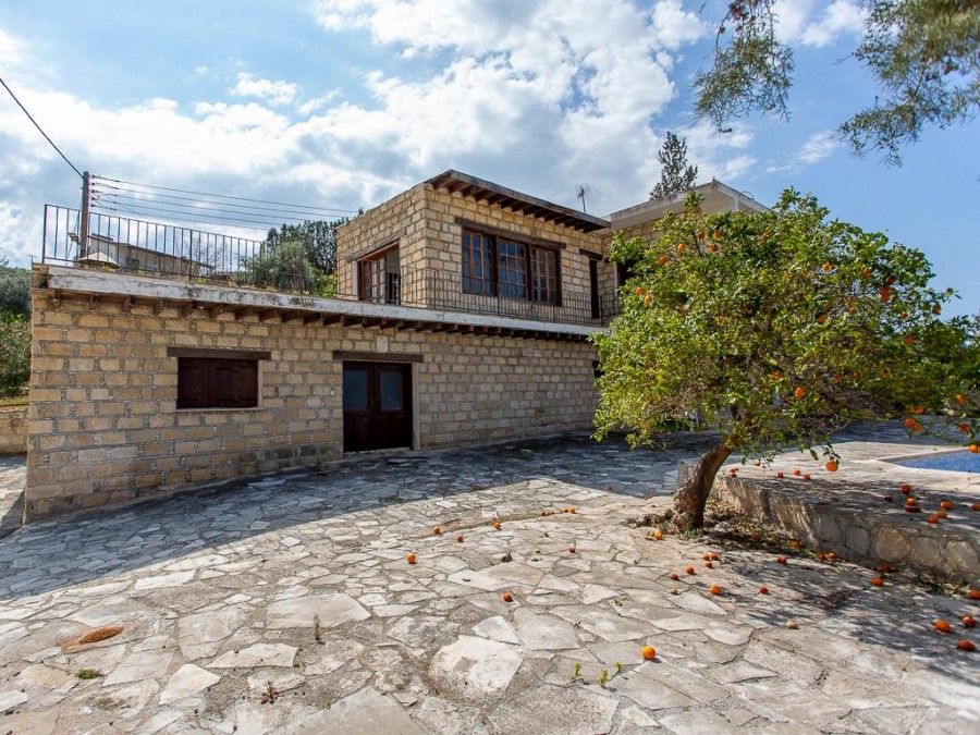 Detached two storey house with swimming pool, in the Steni Community of Paphos District. It is located in the center of the community, approximately 150 meters south of the church of Agios Tryfonas.