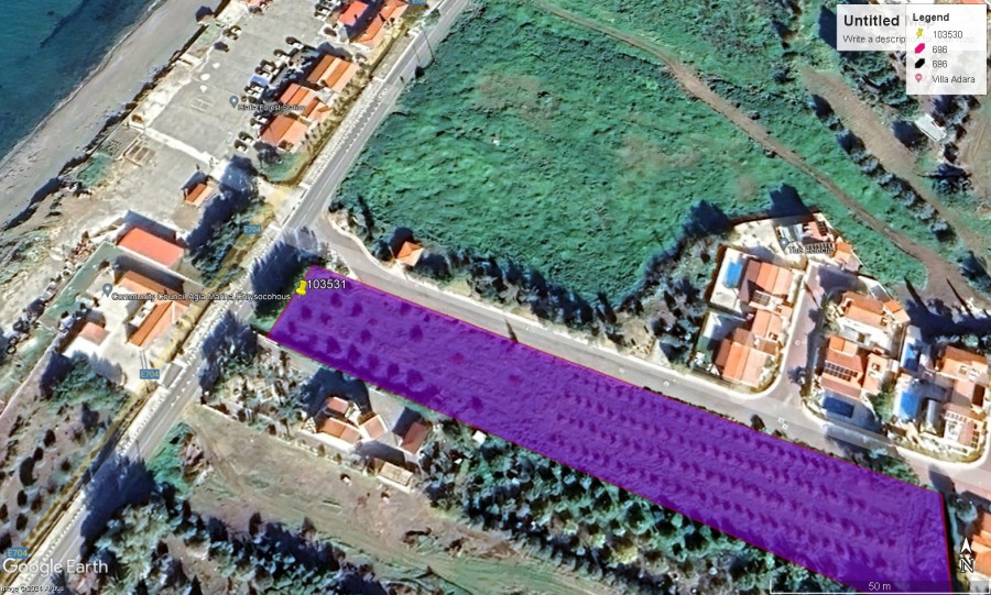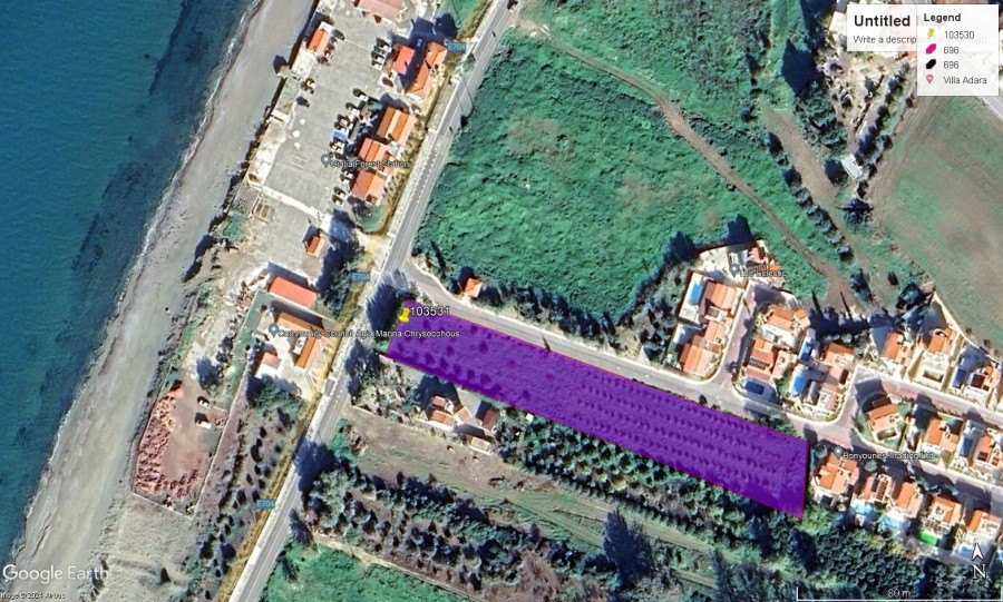 The property is located in Yialia Village, Paphos district about 90 meters from the cost line and about 10 kilometers from Polis Chrysochous. It has a rectangular shape, with flat surface offering nice views of the cost line and the surrounding area.  It is accessed through a registered asphalted road and it falls within the touristic zone T3g with building density 25% and building coverage 25%